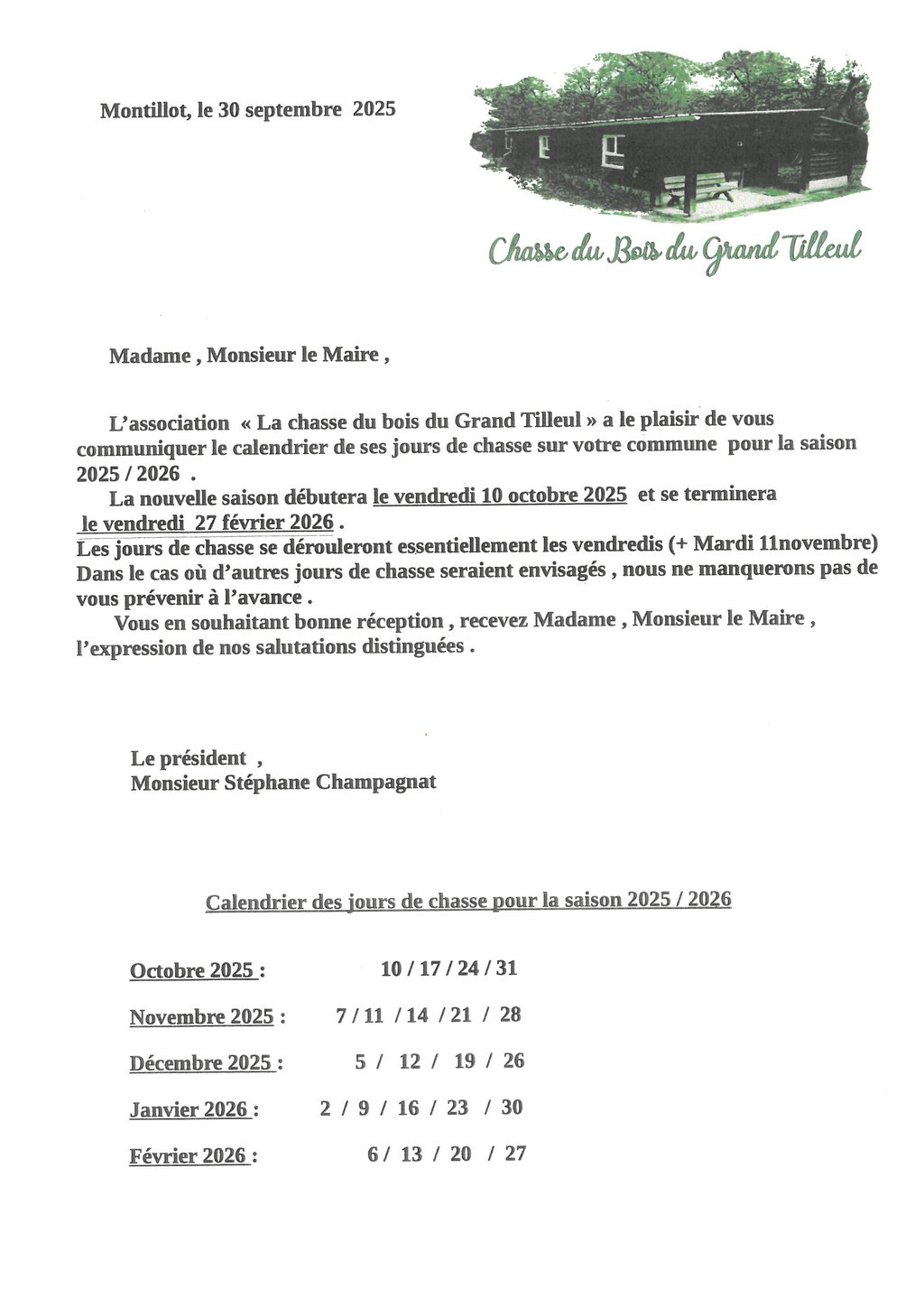 Les personnes intéressées sont priées de s'inscrire en mairie jusqu'au 4 novembre 2025